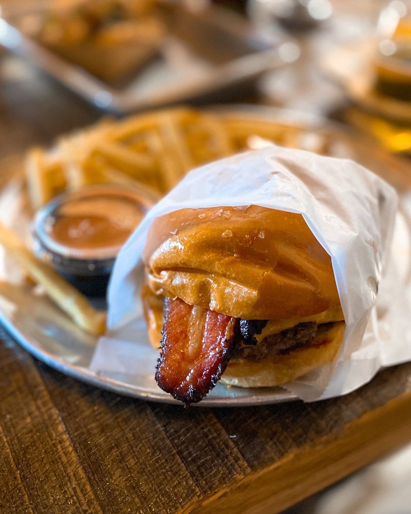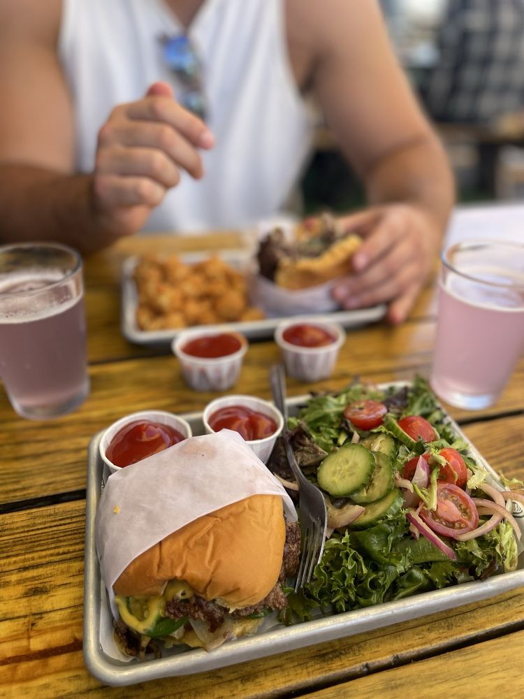 Guests rave about the Smashburger and the soft pretzels, which come paired with a savory cheddar cheese sauce and stone-ground mustard. The Mediterranean salad also garners praise for its freshness and flavor, making it a perfect lighter fare. The outdoor patio is a major highlight, providing shaded seating ideal for families and furry friends alike.
